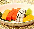 Este menú contiene sólo frutas, incluidas frutas frescas, compota de fruta y postres de frutas.